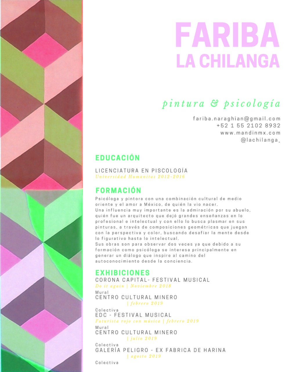 Psicóloga y pintora con una combinación cultural de medio oriente y el amor a México, país que la vio nacer.